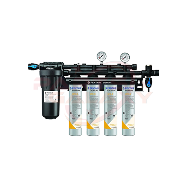 A compact high capacity plate mounted system complete with 4 x 4FCS carbon block cartridges and E20 20-inch sediment prefilter. Inlet and outlet gauges help you monitor water pressure to determine when a cartridge change is due.
